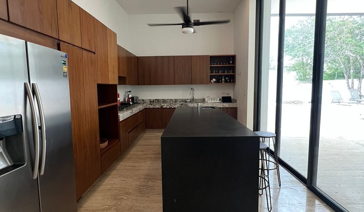 Casa de una planta en Temozon norte, con cocina totalmente equipada ,comedor para 12 personas, sala con área de bar,2 habitaciones con baño completo.