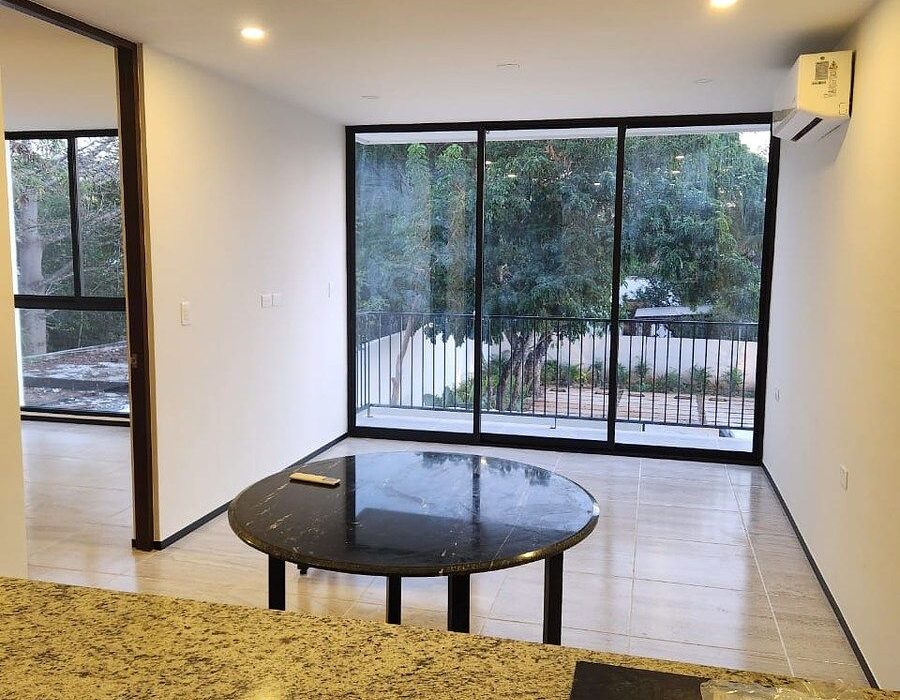 Departamento en primer nivel una recámara en RENTA en Remolino Temozón Norte equipado.