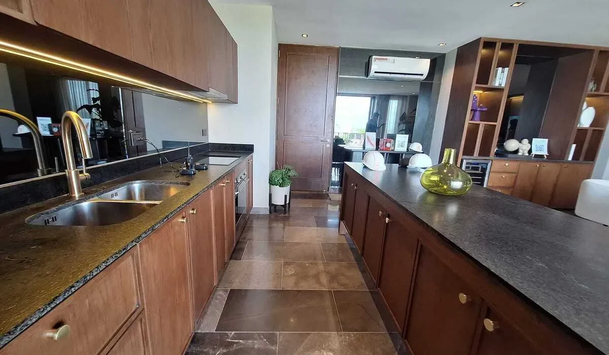 El departamento ubicado en el piso 14 cuenta con 138m2 en el que podrás encontrar amplios y cómodos espacios diseñados para tu confort. Amplia e iluminada área de sala y comedor con terraza y vista espectacular, cocina abierta con barra en acabados de fino granito y carpintería de excelente calidad.