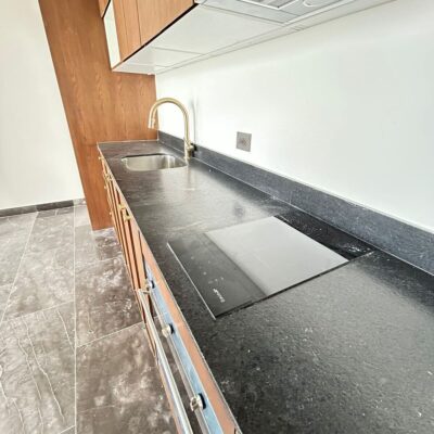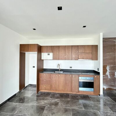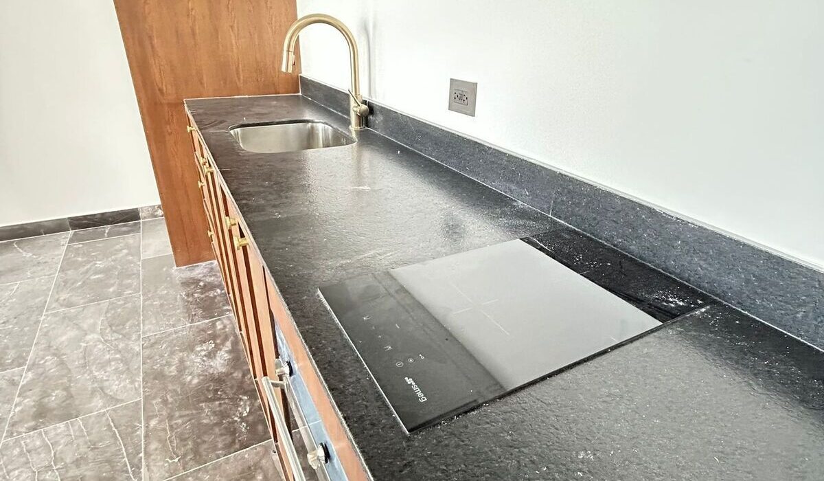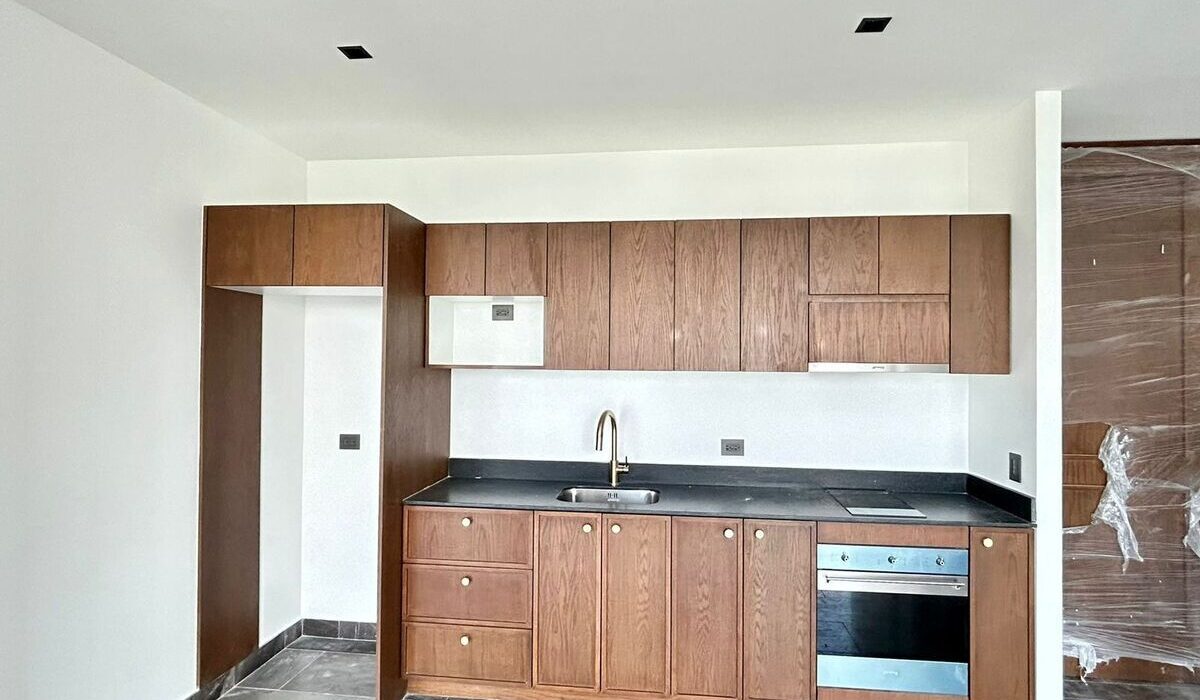 Amplia e iluminada área de sala y comedor con terraza y vista espectacular, cocina abierta en acabados de fino granito y carpintería de excelente calidad.
